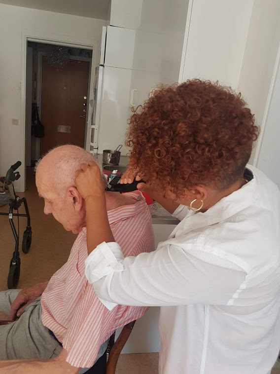 “Min pappa kan inte ta sig till en frisör på egen hand. Han ser fram mot varje gång som Indira kommer och klipper honom och jag vet att det alltid finns tid för samtal och mycket skratt.”